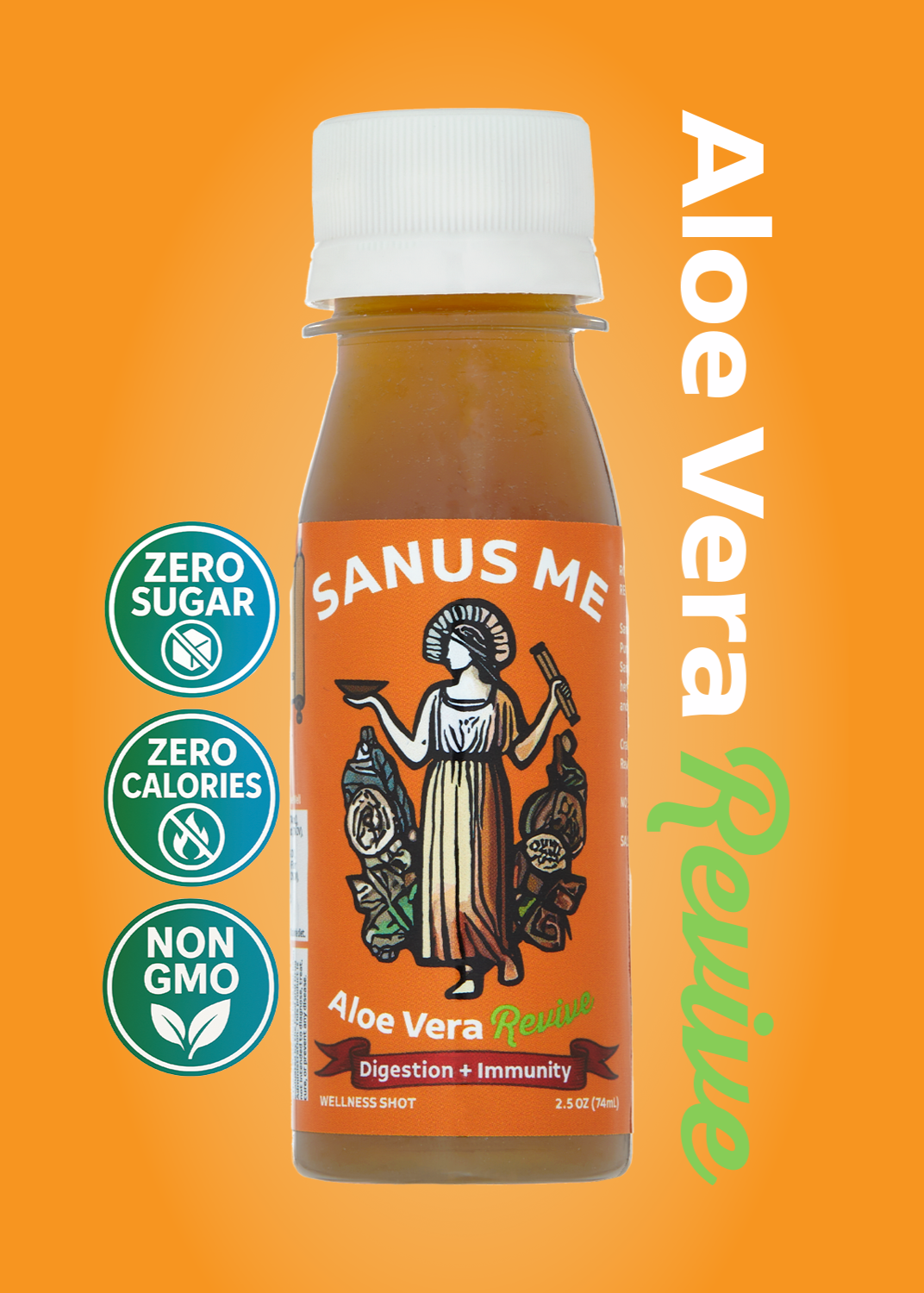 Sanus, "healthy" in Latin - reflects our purpose. Sanus Me blends Aloe Vera and Functional Herbs for Fast-Acting Support of Digestion and Immunity